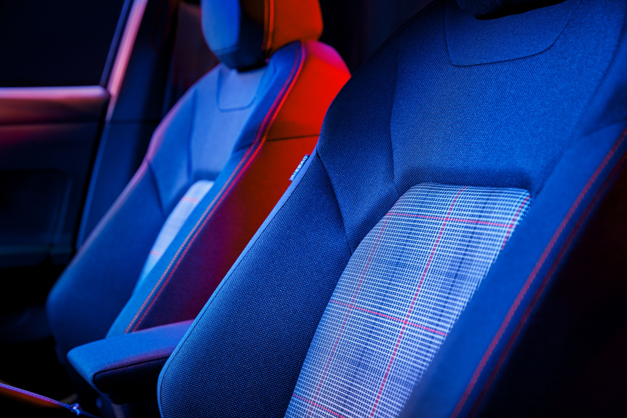 步入車室,GTI 專屬湛黑頂篷、GTI專屬門檻飾板與GTI 專屬金屬踏板即映入眼簾,內裝多處採用精緻紅色車縫線綴飾,GTI專屬運動化真皮多功能方向盤下方嵌入GTI字樣和紅色飾板,與GTI 專屬運動化真皮排檔桿、GTI專屬經典格紋織布跑車座椅相互呼應。