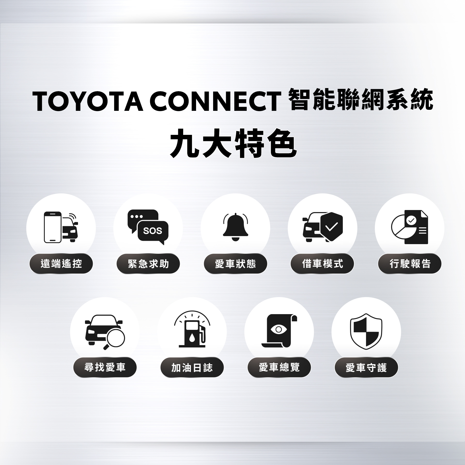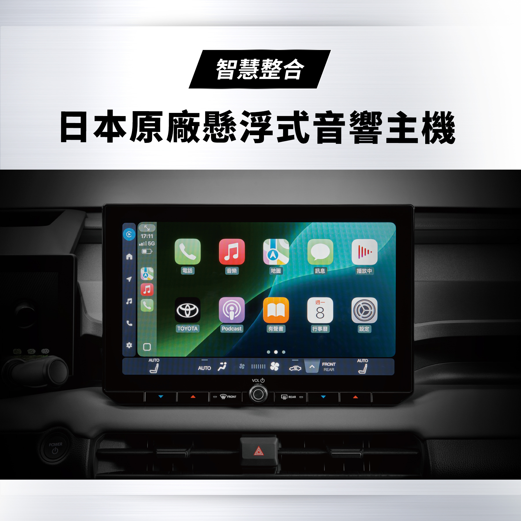 科技配備部分,搭載最新的TOYOTA Connect智能聯網系統,提供車主更便利的用車體驗,可透過專屬APP遠端遙控空調,預先調節車室溫度,提升舒適性,以及還可遠端遙控車門與車窗,完整掌握愛車狀態,並且本次TOYOTA首度導入緊急求助功能,在行駛時若發生嚴重碰撞,將自動通報緊急聯絡中心,主動啟動救援流程。而在座艙內,本次更升級日本原裝12.9吋懸浮式音響主機,不僅提供高解析度及更靈敏的操作回饋,還同步整合空調控制、駕駛輔助系統設定等,並可無線連接Apple Carplay與Android Auto。除此之外,還搭配12.3吋全彩數位儀錶板並整合導航功能,打造更具科技感的智慧座艙。