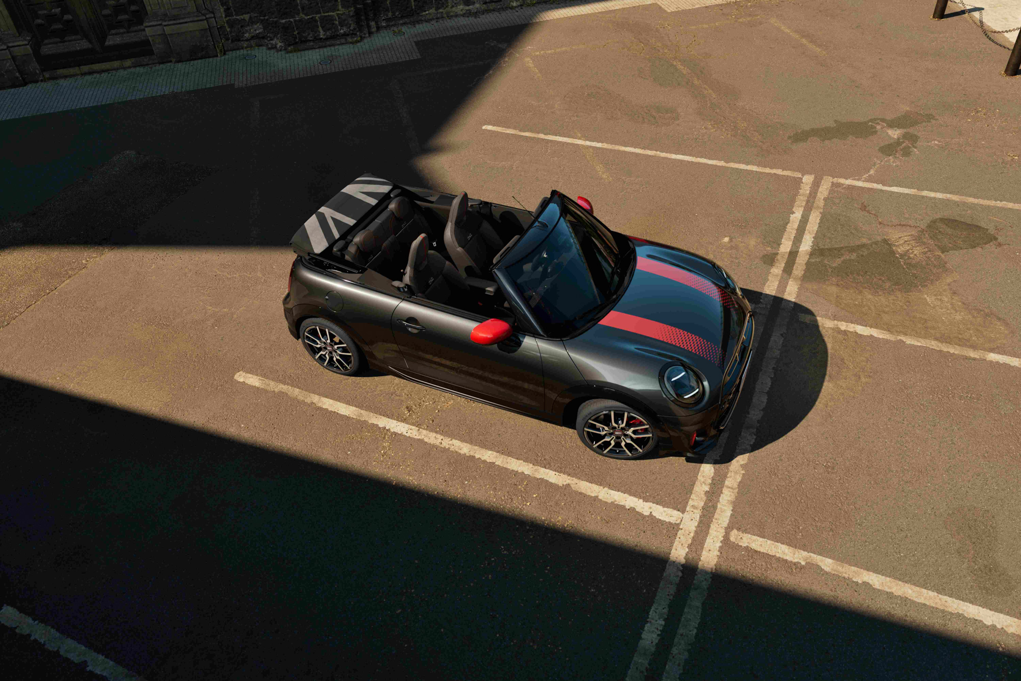 全新MINI John Cooper Works Cabrio採用經優化的後下擾流空氣動力結構,有效降低風阻,提升行車穩定性;運動化引擎蓋飾條則強化賽車血統,彰顯JCW的競速傳承。提供12款個性化車色選擇,其中包括敞篷專屬Sparkling Cooper Grey,更可搭配黑色或紅色的後視鏡蓋。
