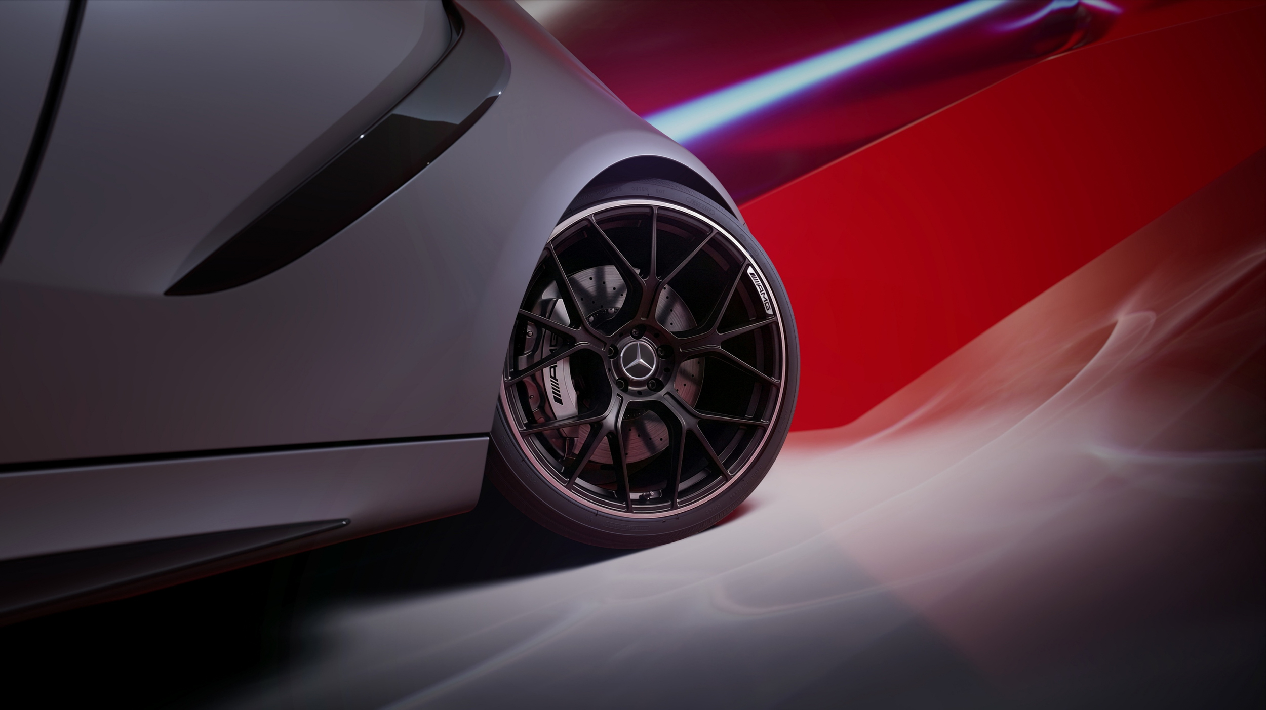 「140 Years Edition」外觀張力透過精緻的黑化細節層層堆疊:AMG 夜色套件將前保桿下緣、車外後視鏡罩、側窗框與腰線飾條全面採亮黑處理,並延伸至側裙與後下擾流板;搭配後側窗與後擋風玻璃的深色處理,營造出如影隨形的流動感,宛如城市夜幕中冷靜掠行的存在。AMG 空力造型套件則進一步強化車身輪廓,包含前擾流板及兩側勾狀翼片,在優化空氣力學表現的同時,為整體造型注入更鮮明的性能層次。視線向下延伸,20 吋 AMG 交叉輪輻式鍛造輪圈,為車輛動態表現勾勒出俐落而銳利的收尾。而車主最後能還能 0 元自由搭配五種特殊漆面打造專屬夢想車,讓每一台「140 Years Edition」擁有專屬的詮釋。