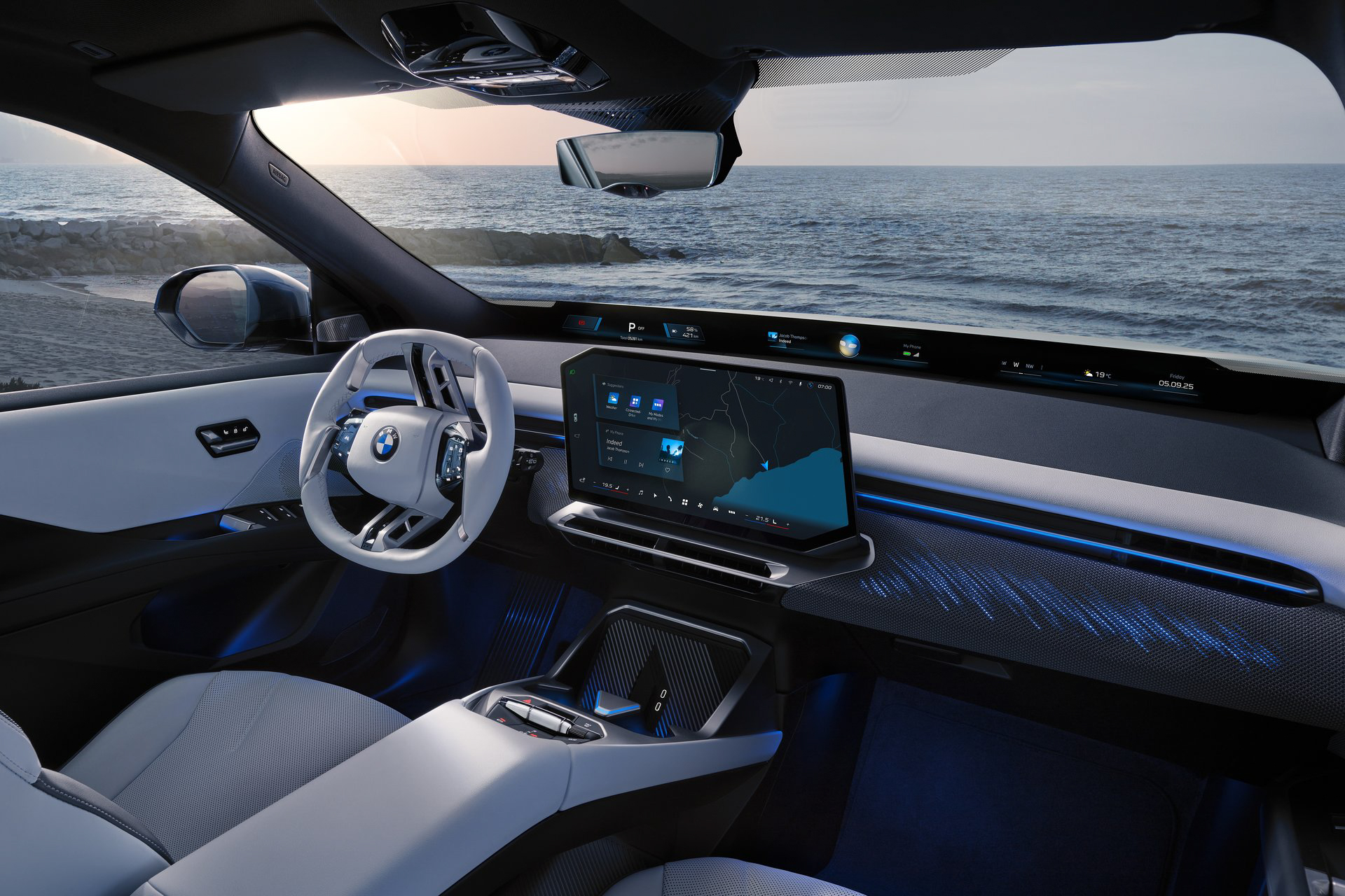 又或者是近期在台灣電動車市場熱銷的 BMW iX 與 i5,雖然同樣擁有科技感十足的曲面螢幕,但其巧妙地利用水晶切換撥桿與環艙光影,將數位科技包裝在如精品家具般的座艙氛圍內。