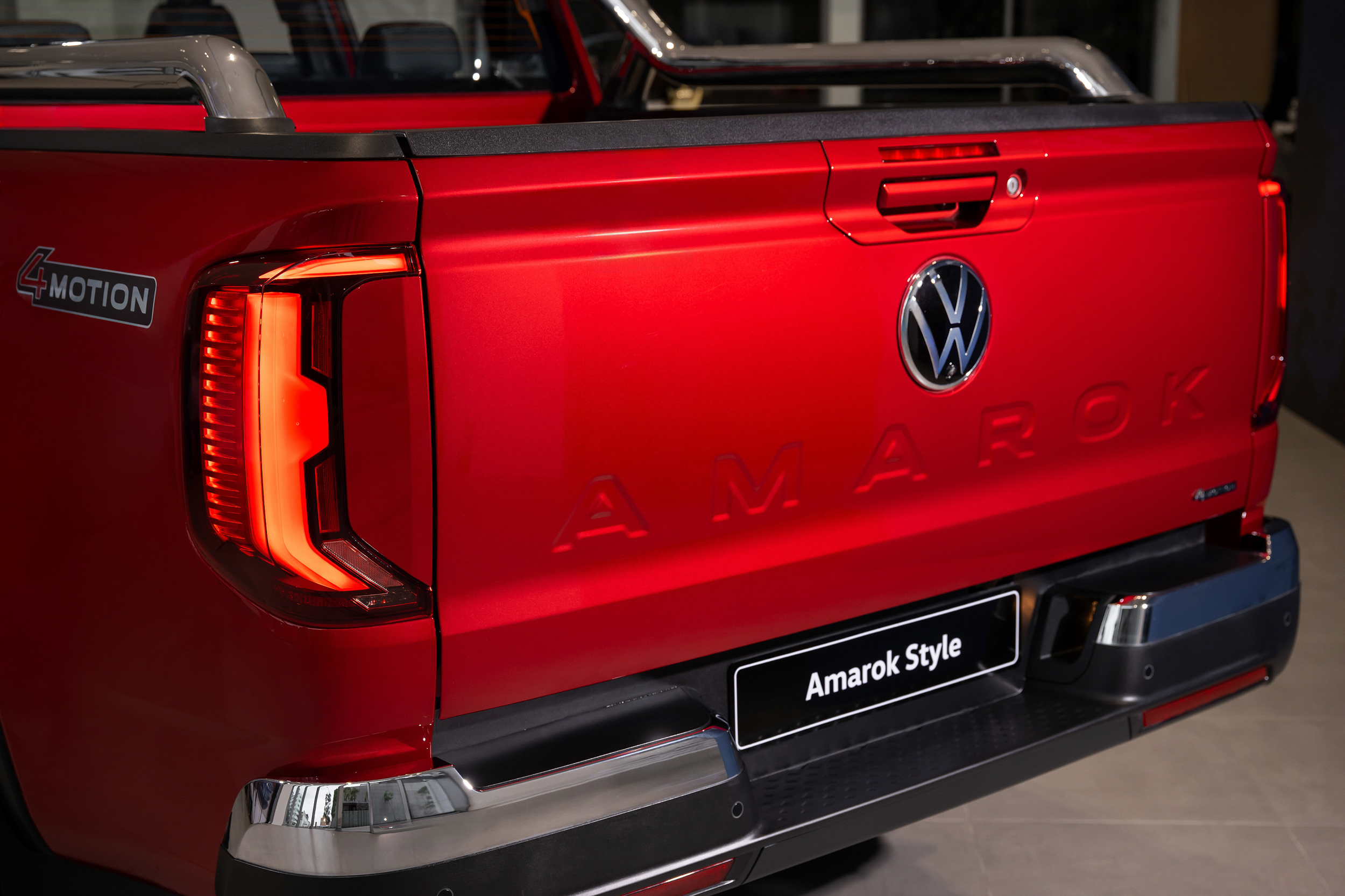 Amarok Style 外觀造型在保留越野運動風格同時,亦增添不少Volkswagen 高級休旅車的設計精髓,將精緻越野風格與創新科技質感完美結合。車頭前方採用車身同色的大型前保桿搭配銀色防刮下護板,將水箱護罩、前氣壩及 IQ.Light 矩陣式 LED 頭燈整合其中,搭配前後葉子板的大型外擴輪拱設計,保留越野運動皮卡充滿肌理線條的視覺感受。外觀配備則將車身同色前保桿、車身同色車側後視鏡及門把、黑色後保桿含鍍鉻飾條、車身同色尾門門把、18吋銀色鋁圈含頂級公路胎、側踏含鍍鉻飾條、鍍鉻銀車斗防護架等均為標準配備,兼顧視覺上的整體質感及日常用車的實用便利性。燈光採用「C」字型光條設計並整合日行燈/方向燈/停車燈於一體的 IQ.Light LED Matrix 矩陣式頭燈、與頭燈前後相呼應的高亮度LED尾燈、左右後視鏡照地燈、裝載平台照明燈和牌照燈等共組而成,當車輛熄火後可靈活選擇開啟車輛外部四個區域的照明,夜間的照明便利性大幅提升。