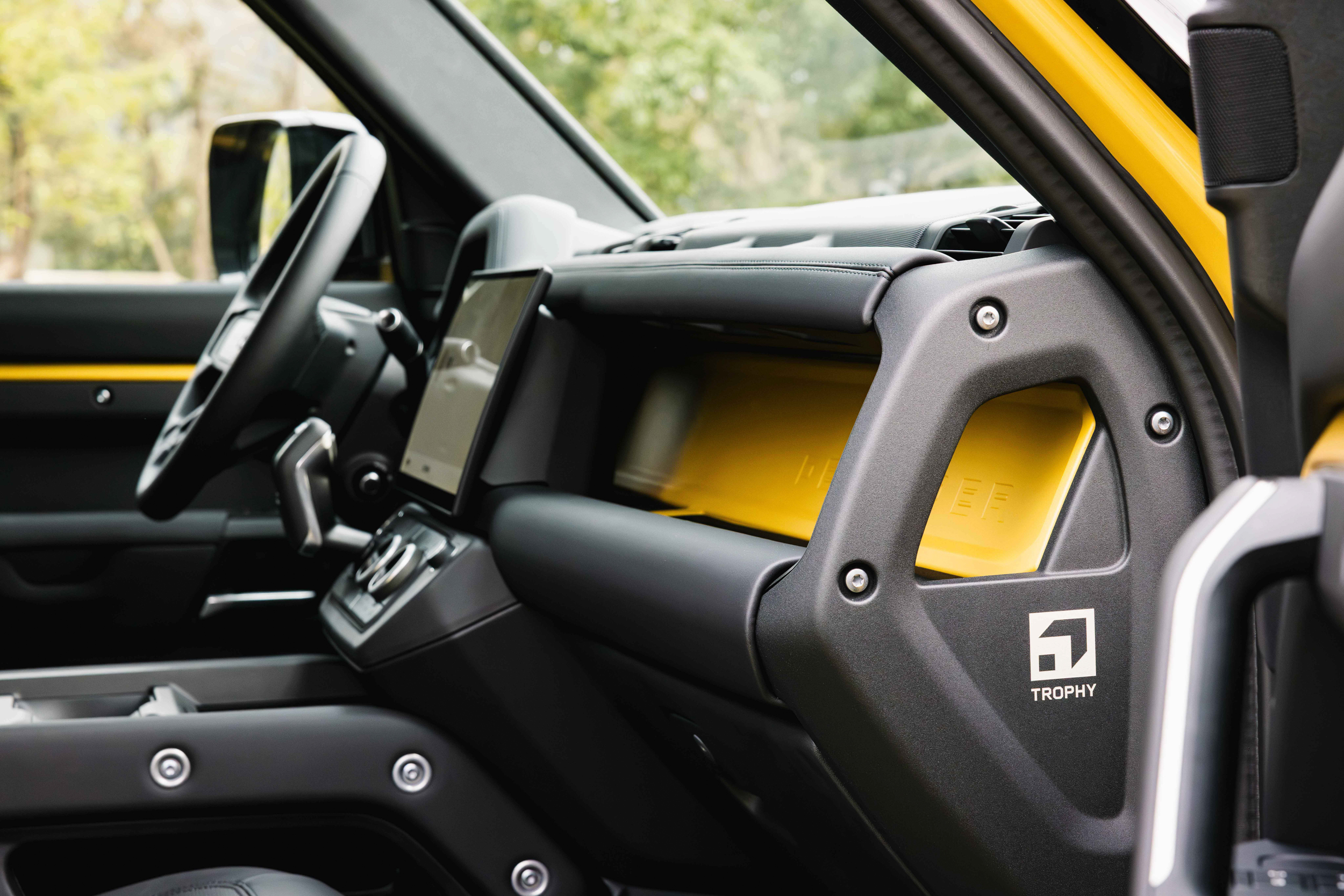 Defender Trophy Edition 限定版以全新 26 年式 Defender 110 車型為基礎,外觀提供沙光深黃(Deep Sandglow Yellow)與凱西克綠(Keswick Green)兩款專屬的經典主題配色選項,搭配引擎蓋、車身下方、煞車卡鉗與後拖車鉤採用對比鮮明的亮黑色飾面,塑造賽事主題專屬外觀識別。沙光深黃是以現代化風格,詮釋昔日 Defender 參與國際越野賽事使用的代表性色彩;而凱西克綠則是致敬 Defender 英國原創的探險精神,兩款塗裝皆可進一步選配緞光防護膜,為車身提供額外防護,讓車主能更加安心地挑戰極限,並且提升車輛耐用性。