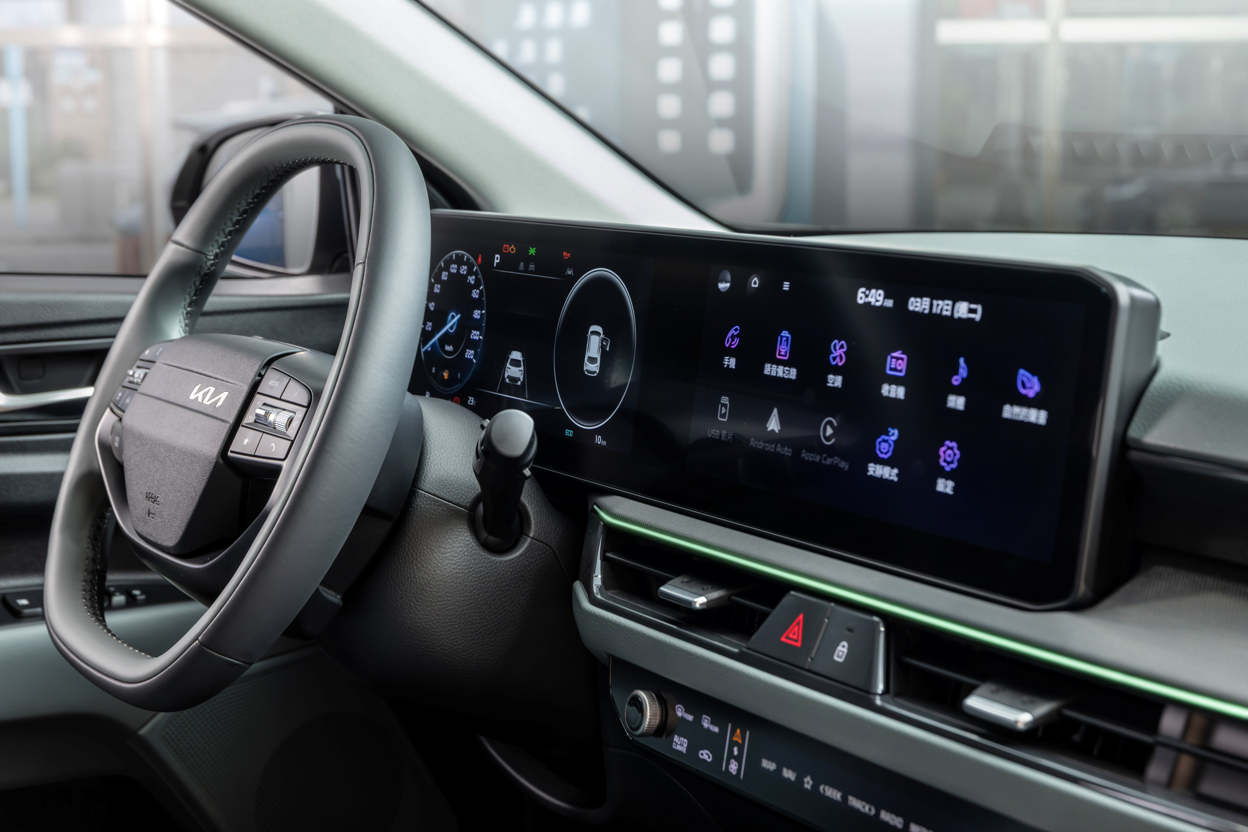The new Stonic座艙更全面升級,擁有同級最佳雙12.3吋全景顯示螢幕(數位儀表板與多媒體影音觸控系統),並可根據用車需求,設定多位駕駛者專屬偏好的模式,包含溫度、音響、駕駛模式等設定,並支援Apple Carplay™/Android Auto™;一鍵切換數位控制面板可快速切換音響主頁與空調模式,同時保留雙側實體按鍵,提供駕駛者更直覺且安全的操作。同時,The new Stonic全新的Mélange複合材質座椅,搭配質感升級的精緻排檔桿與中船設計,與水平式座艙設計搭配脈衍光刻金屬飾板、Smart Lounge紋理內飾板,並融入64色可調式氣氛燈。The new Stonic搭載比擬旗艦車款The Kia EV9的雙幅式多功能方向盤,位於方向盤下方的Drive Mode鍵,不僅可更輕鬆就手地切換行車駕馭系統(ECO/Normal/Sport),還可連動相對應的氣氛燈變化,營造更個性化的駕駛氛圍。此外,後行李箱隔板新增收納滑軌設計,不用再為收納隔板而費心,打造靈巧貼心的駕馭體驗。