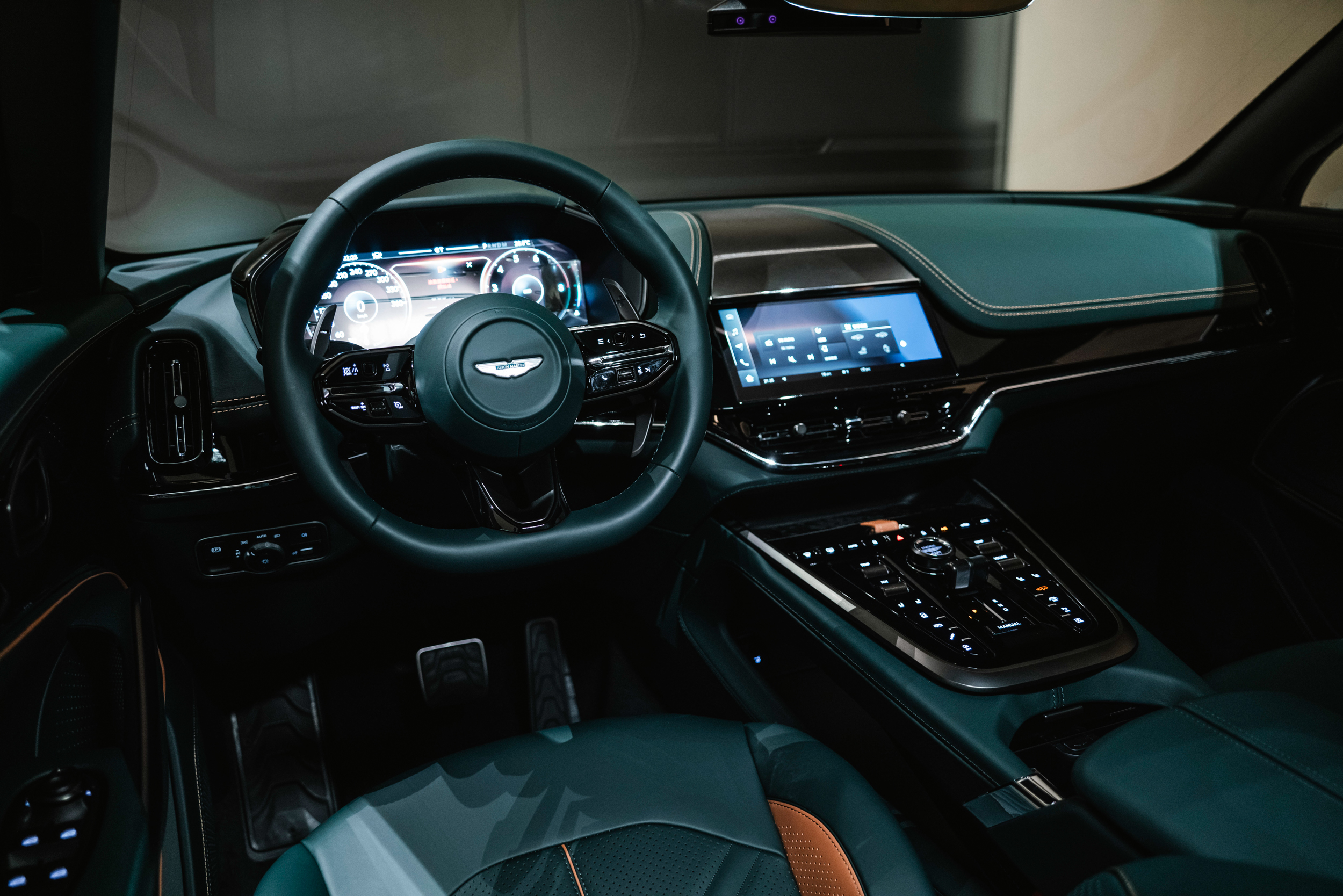 細節之處同樣展現品牌工藝底蘊,座椅頭枕繡有專屬「S」字樣,每一組刺繡皆需近 2,500 針、使用超過 16 公尺的絲線方能完成。另可選擇車壇首創的 3D 浮雕工藝,透過 1.5 噸壓力與高溫處理,在皮革表面塑形出具毫米級精準度的 Aston Martin 翼形廠徽,呈現更具深度的觸感與視覺層次。
